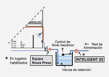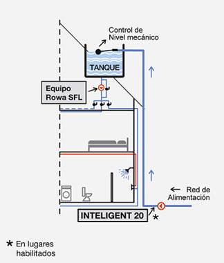 Nota: A la salida del tanque elevado se puede instalar un equipo presurizador ROWA para brindar una presión confortable a toda la vivienda.