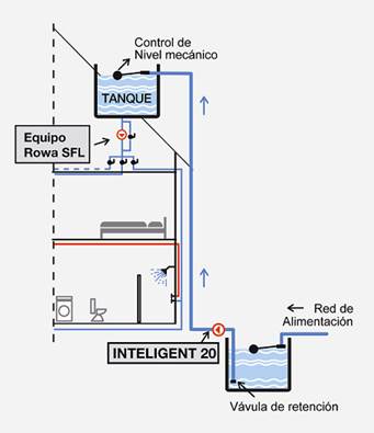 Instalación de la INTELIGENT 20 para automatizar el llenado y optimizar la capacidad del tanque cisterna desde la red de alimentación.