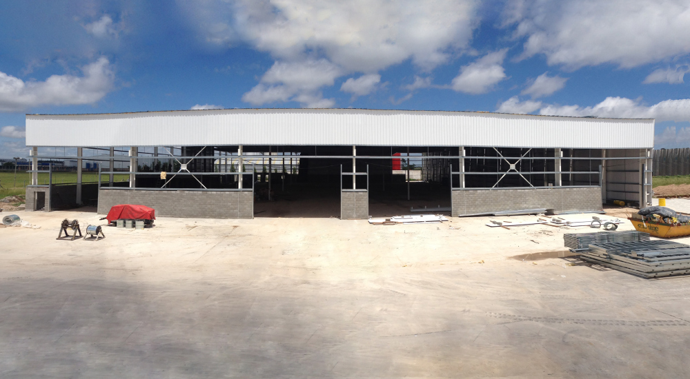 En esta etapa de la obra correspondiente a la ampliación de la planta, ubicada en el Parque Industrial de Almirante Brown, se está colocando la cubierta y cerramientos laterales de la nave.