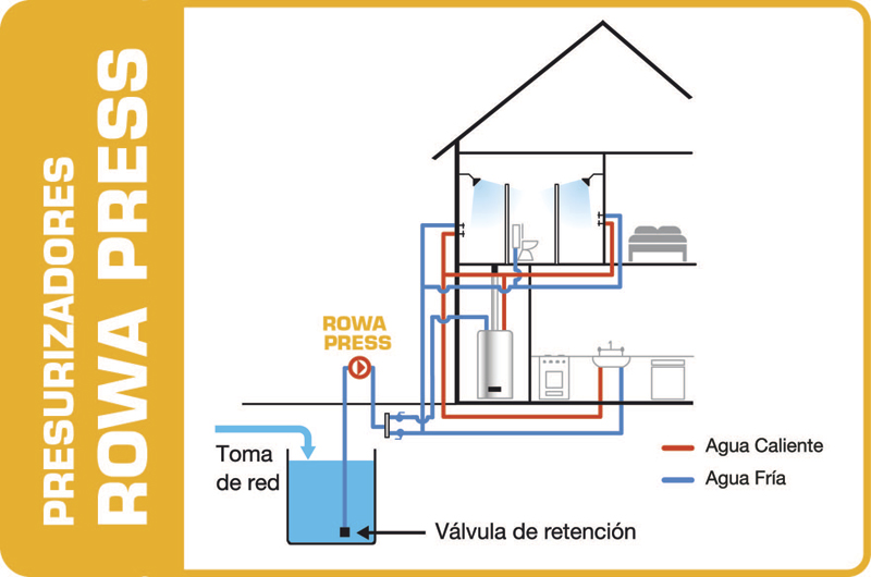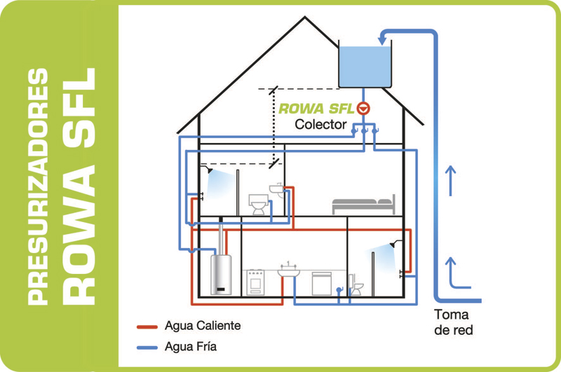 De fácil instalación, un sólo presurizador ROWA para toda la casa aumenta de forma automática la presión de agua en griferías y duchas. Se instala en la vivienda, dentro de la instalación sanitaria existente, próxima al tanque elevado o cisterna.