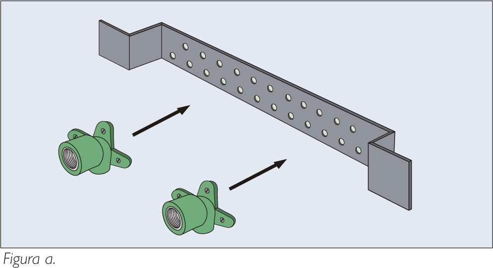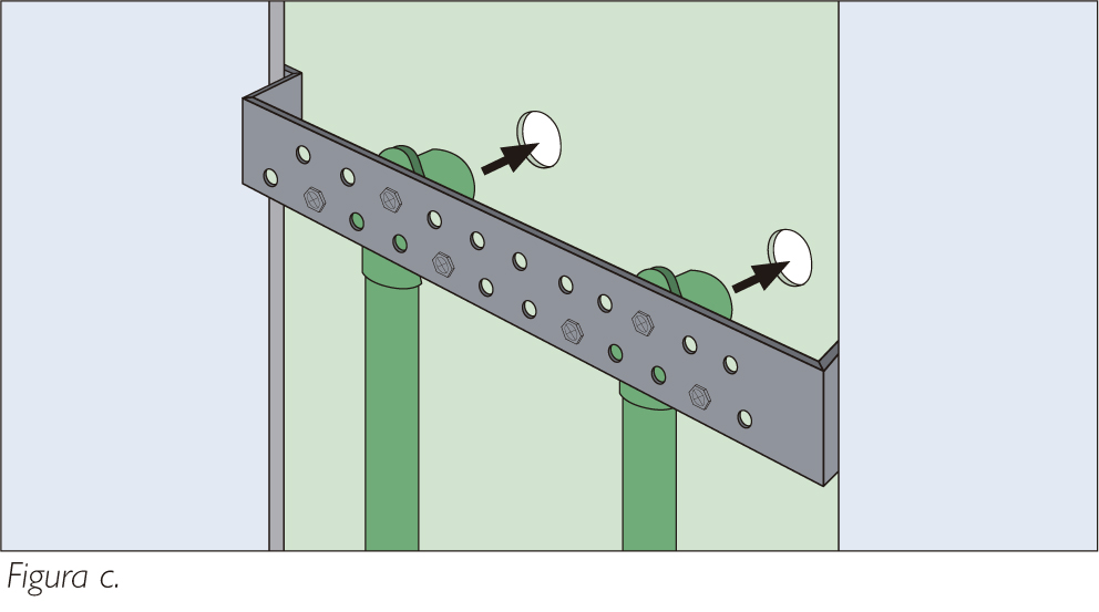 Primero se fija la planchuela perforada a los montantes metálicos: