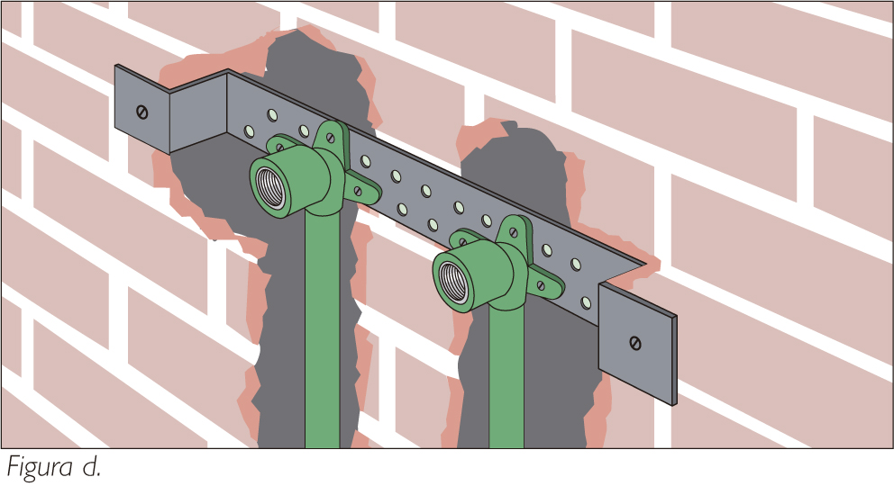 La posición y fijación definitiva se conseguirá haciendo coincidir las aletas de los accesorios con las perforaciones de la planchuela tratando que la distancia se corresponda según el artefacto sanitario a conectar.